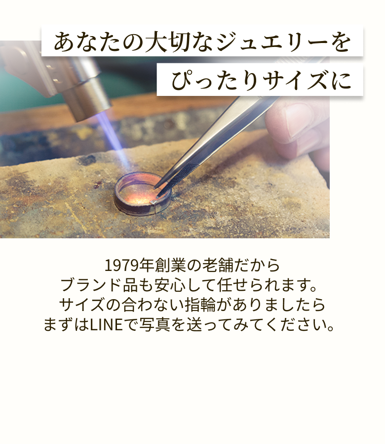 はい、問題ありません。他店で購入された指輪でも、素材やデザインを確認したうえで丁寧にサイズ直しを行います。 「購入店では断られた」という場合でもご相談ください。